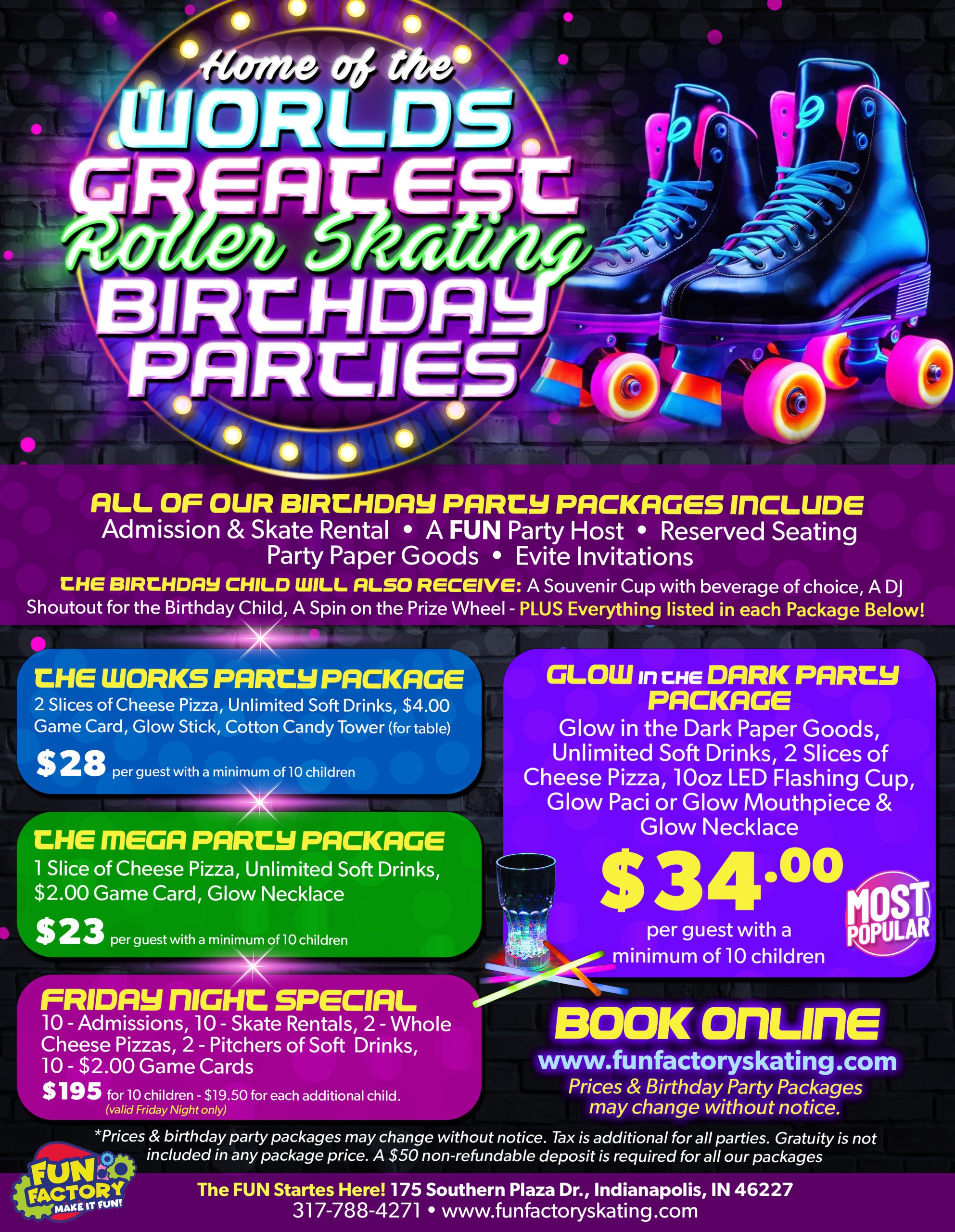 - Fun Factory only reserves tables if you are holding a purchased birthday party package. We do apologize for this inconvenience.