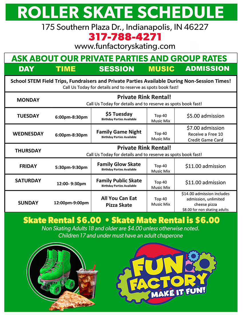 Schedule subject to change without notice. Skate Rental $6.00, plus tax.